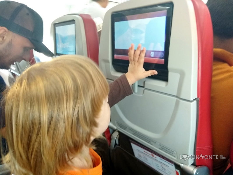 Всё действительно оказалось, как и обещали, полет прошел супер-комфортно: места хватает даже для длинных европейских ног, Лёва почти всё время был занят мультимедиа экранчиком: то смотрел мультики, то говорил, что работает — вызывал экранную клавиатуру и бесконечно нажимал на кнопки.