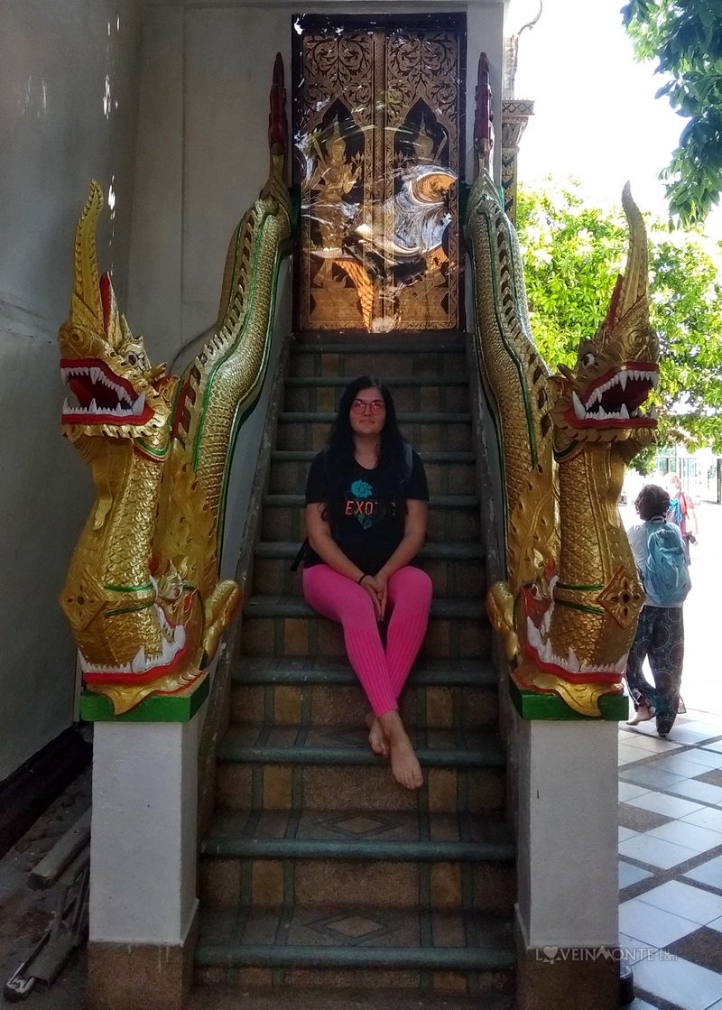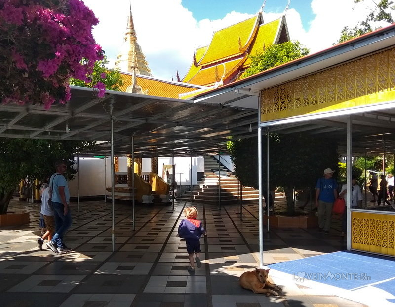 Ну а непосредственно к храму ведет лестница из 300 ступеней. Есть альтернативный вариант подняться — на фуникулере за 20 бат (находится возле медпункта).