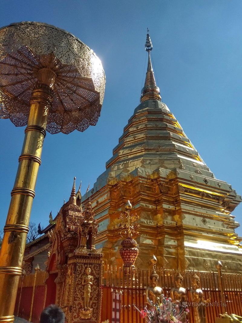 Doi Suthep — высокая гора, которую хорошо видно практически из любой точки Чиангмая. На ней находится красивый храм, который считается обязательным место для посещения всеми туристами. Поэтому количество народа там соответствующее и настоятельно рекомендую ехать в будний день.