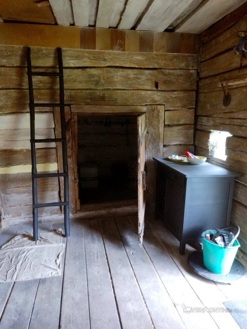 А вот эту тайную комнату с гномьей дверью мы из кладовой переделали в туалет) Что вывело проживание в лесу на совершенно новый уровень комфорта.