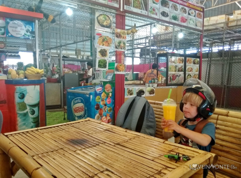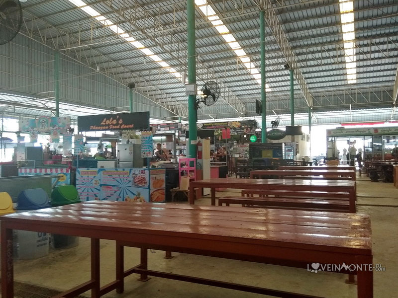 Там есть классические ряды с разным стрит-фудом, а если пройти дальше — то фуд-корт и деревянные столы, за которыми можно поесть купленное. Помещение некондиционированное и не могу вспомнить, есть ли там вентиляторы. Возможно, есть.