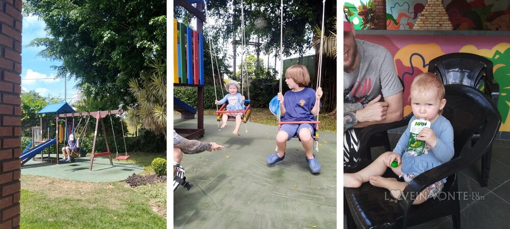 Есть кафе, несколько площадок для мероприятий, пару качелек. Иногда работает дополнительная зона с развлечениями для детей.