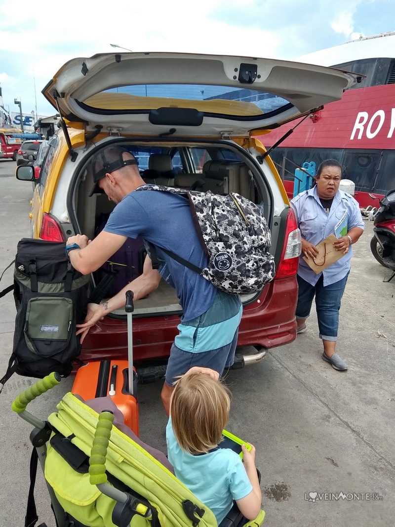 Автобус привез нас к пирсу Seatran в Донсаке. Тут уж без сюрпризов, взяли коляски-чемоданы и пошли по знакомому маршруту на паром. Карточки не выдавали, нас пропустили по бумажным билетам из автобуса.