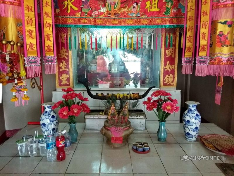 Им приносят дары — цветы, водичку, точно так же, как и в тайских храмах. Ритуал с выбрасыванием палочек тоже похож.