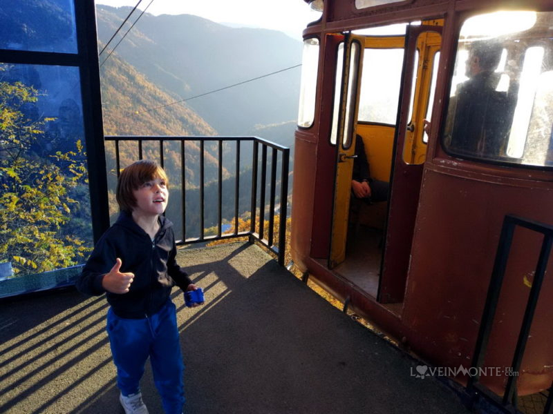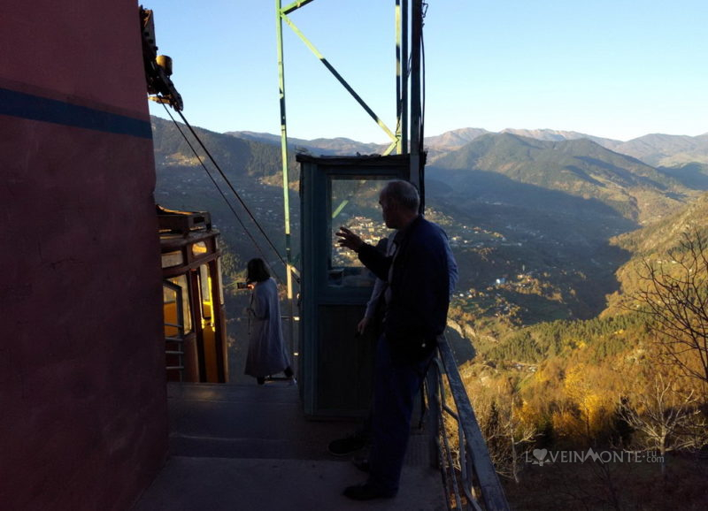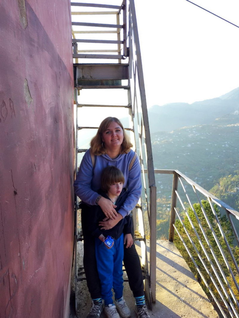 Поэтому сначала все ждут, пока придет дяденька, который управляет кабинкой. Потом кабинка набивается желающими — и уже потом путешествие начинается. К сожалению, не могу вспомнить, сколько мы платили за проезд — вроде бы, по 5 лари в 2 стороны. Лёвыч катался бесплатно.