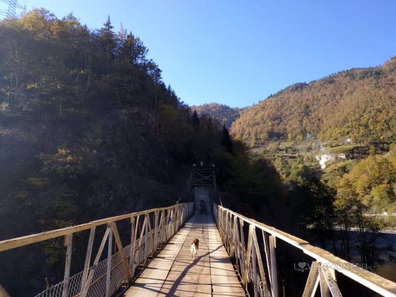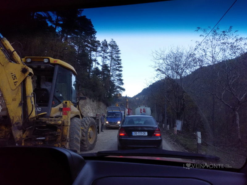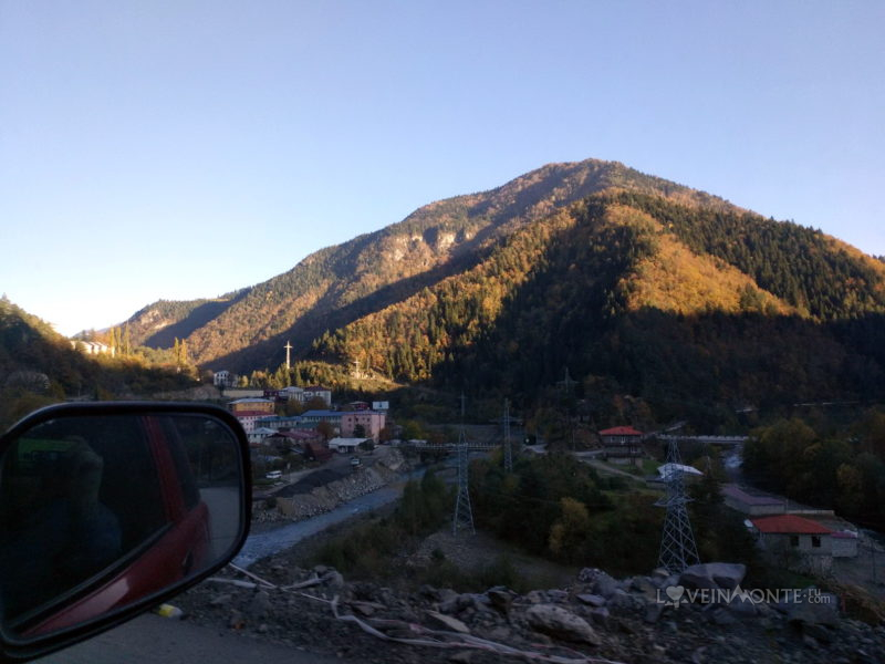 Еще в прошлый приезд в Грузию мы много раз ездили по Трансаджарской трассе, но так и не доехали до села Хуло. А мне очень хотелось прокатиться там на канатной дороге. Заезжали во всякие интересности по пути, и времени до темна оставалось мало. В этот раз мы минимально останавливались, и всё удалось даже несмотря на бесконечные ремонты дороги по пути.