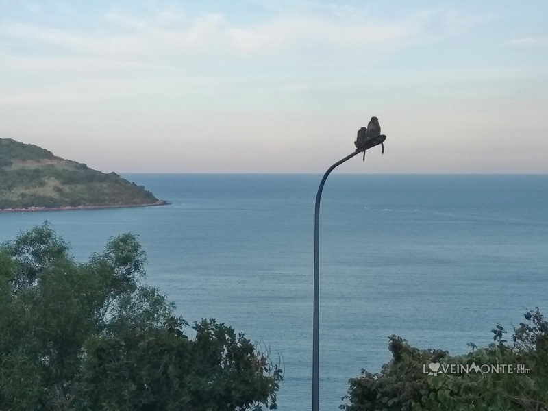 Но самое интересное зрелище, что мы наблюдали — это то, как парочка обезьян забралась на фонарный столб. А потом к ним присоединилась третья.