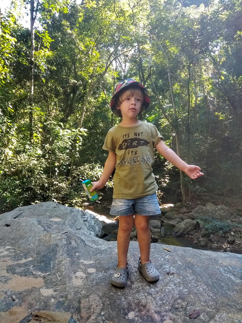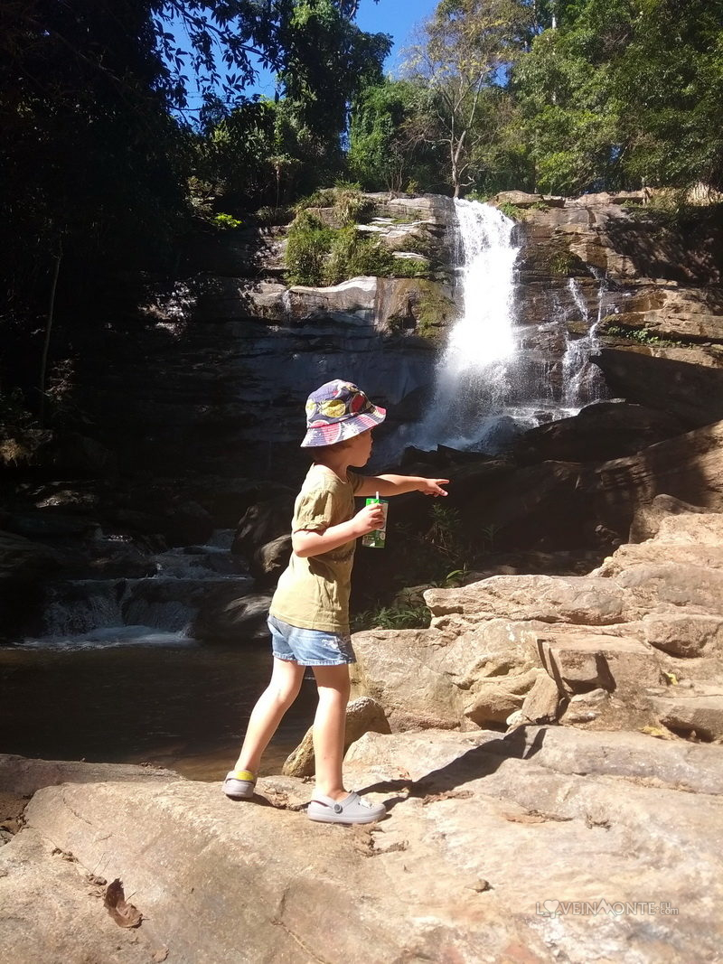 К водопаду ведет ровная оборудованная дорожка, с небольшим количеством ступеней. Лев без проблем прошел весь путь сам.
