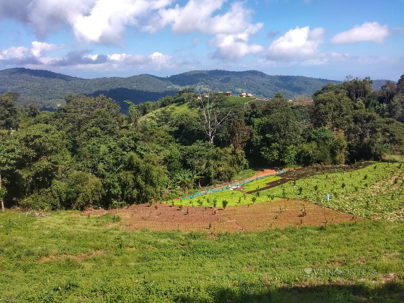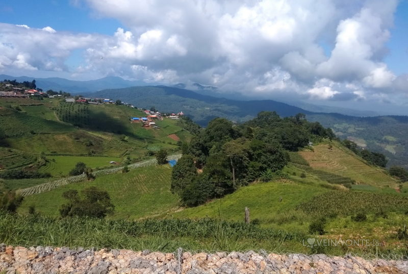 Уезжаем от водопада — и едем по той же дороге, всё дальше от цивилизации — это и будет самая живописная часть маршрута. Маленькие деревни, большие поля, огромные горы, на которых выращивают всевозможные культуры.