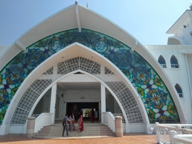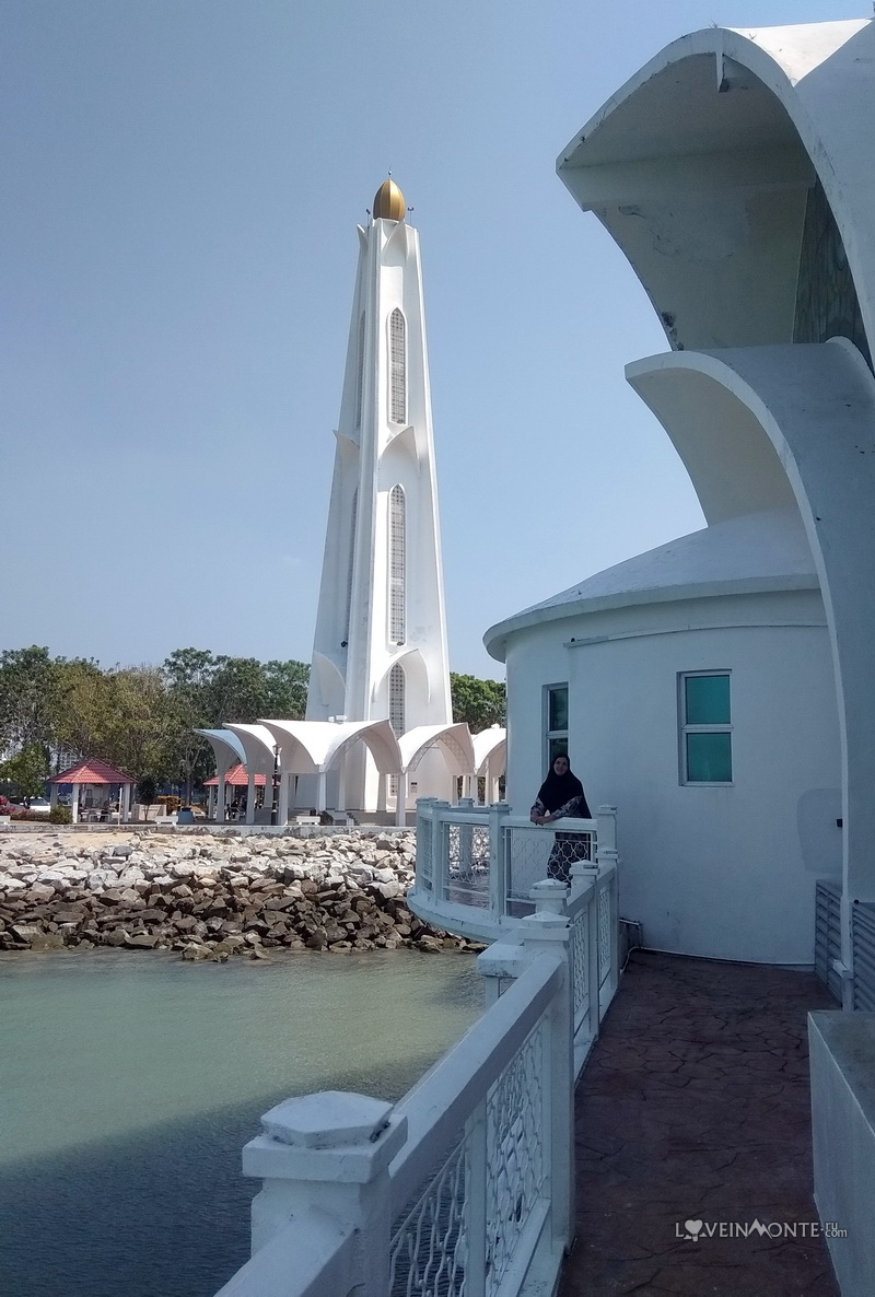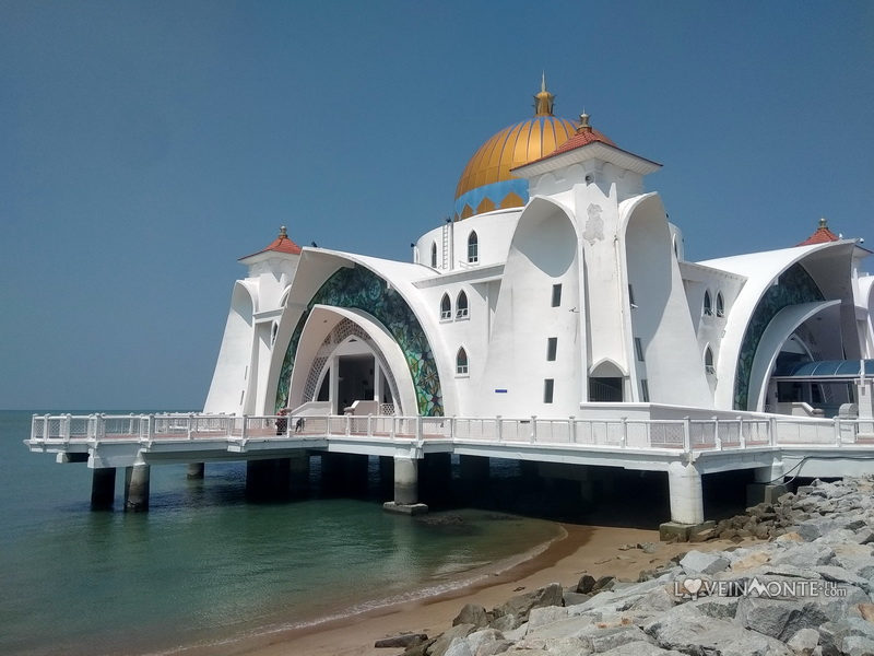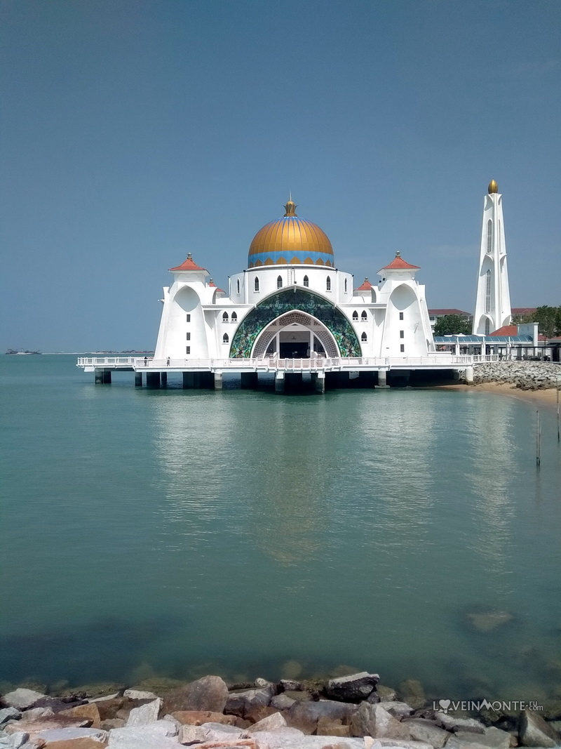 Мечеть построена на берегу искусственного острова Пулау Мелака и стоит прямо на сваях, которые вбиты в морское дно. Во время прилива свай не видно и кажется, что здание плывет по морю)