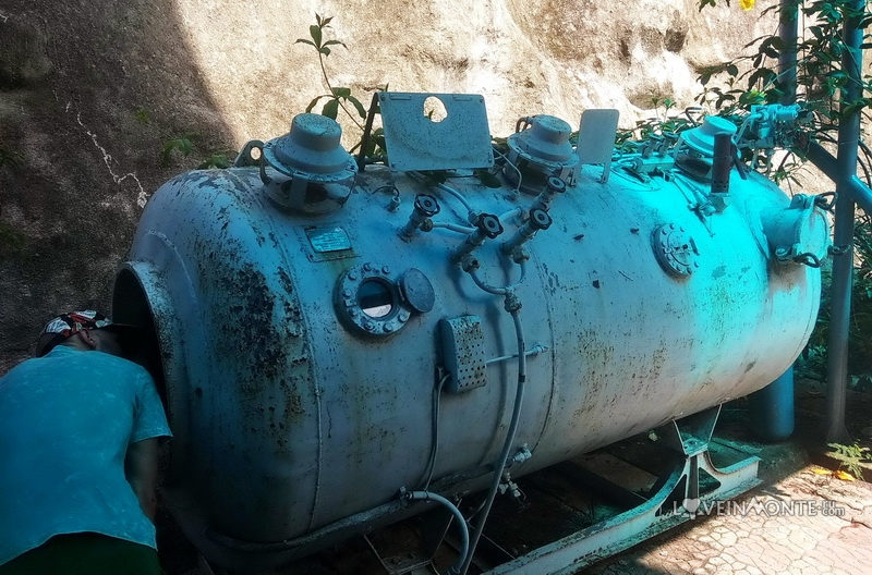 На этом сюрпризы не заканчиваются. Если идти дальше, возле основного здания института океанографии — увидите старый советский батискаф. Можно заглянуть внутрь. Возможно — и залезть, но у нас такого желания не возникло)