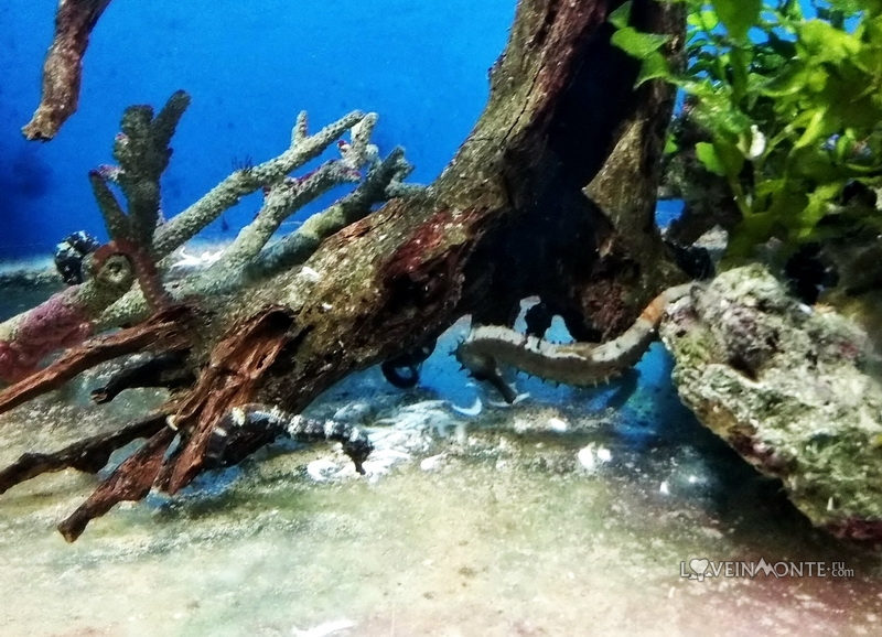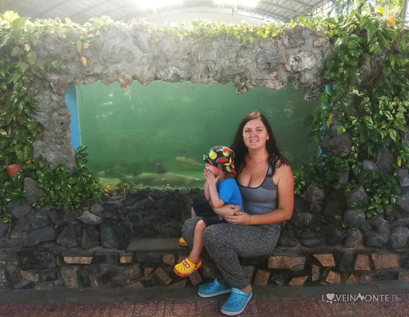 Можно пройти на второй этаж, но нам в этом месте не понравилось, хотелось поскорее сбежать — и мы вернулись обратно, провели еще минут 20 возле большого бассейна с акулами в самом начале экспозиции.