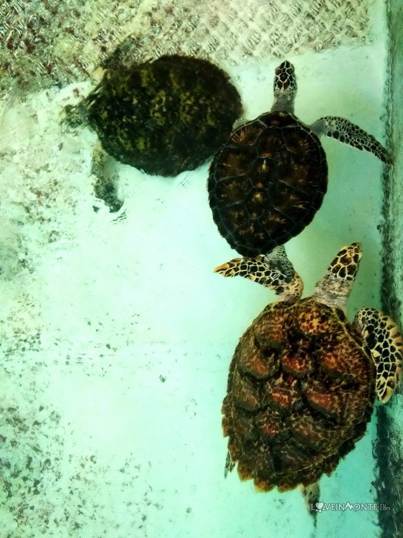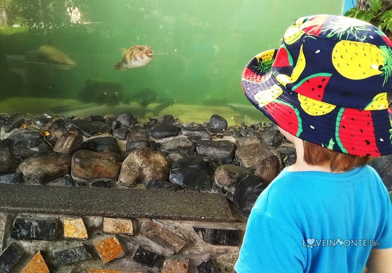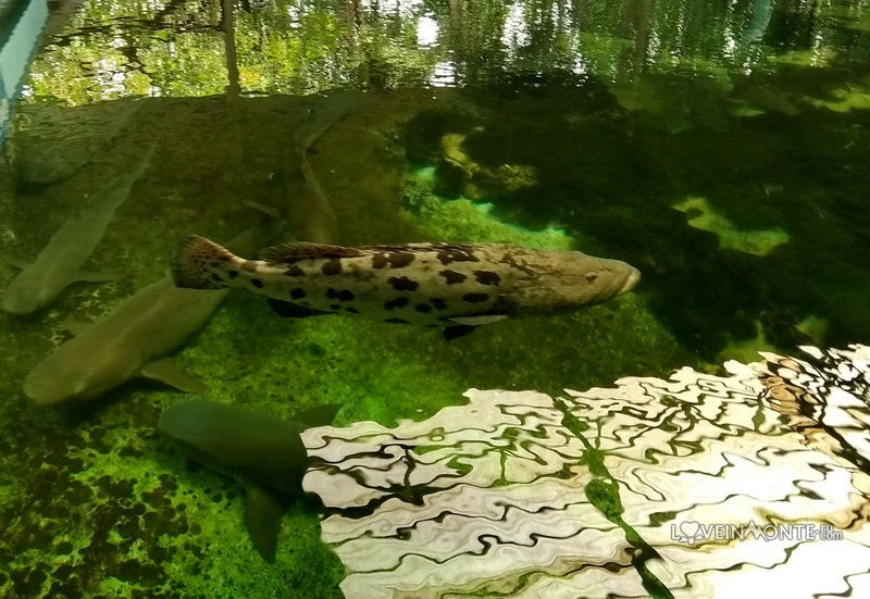 Первое, что встречается после кассы — чучела черепах, а за ними — открытые бассейны с рыбками. Сначала 2 небольших.