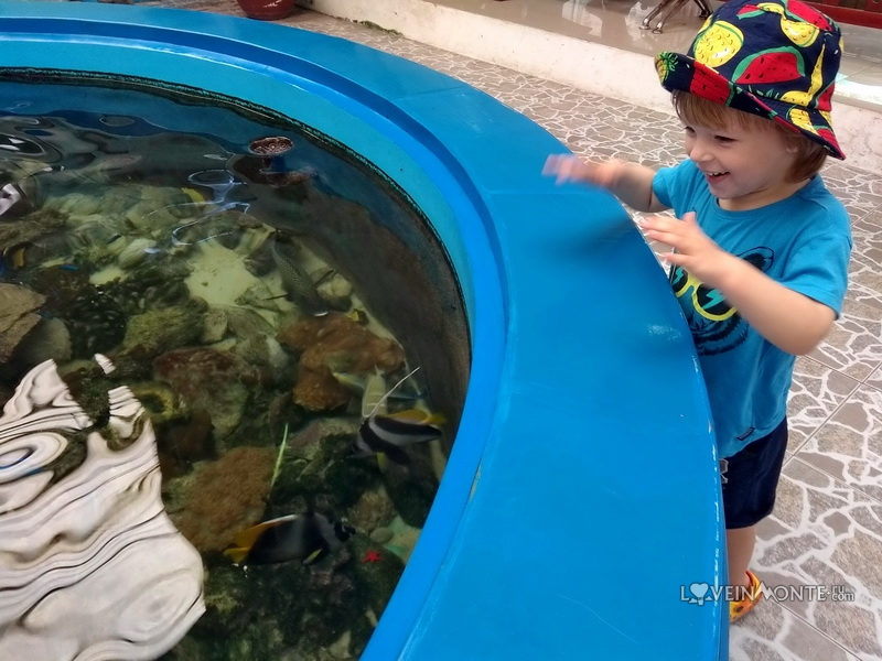 Если всё же зайти в здание — то в правой части вас ждут небольшие аквариумы с разными рыбками, временами — очень экзотичными)