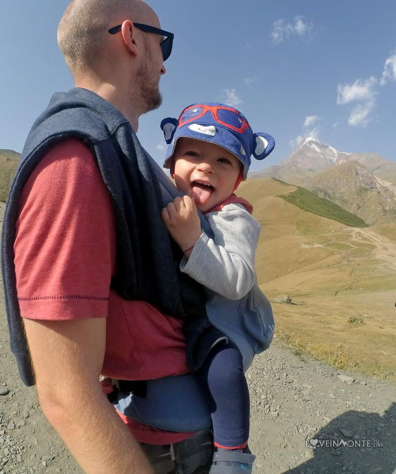 - Для перемещений с ребенком брали с собой коляску и слинг. Коляской пользовались намного реже, чем слингом) В основном в Тбилиси и Телави. Со слингом удалось даже подняться пешком к церкви в Гергети.
