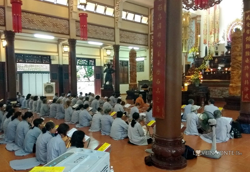 Постучать в него не удастся, всё привязано. Такими вот деталями вьетнамские храмы сильно отличаются от тайских.