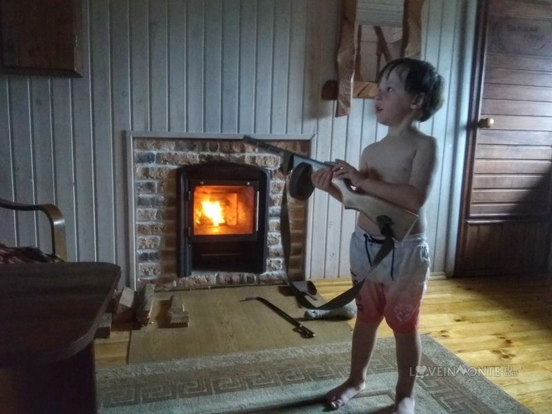 В ней тоже полно всего деревянного, от самодельного боулинга)