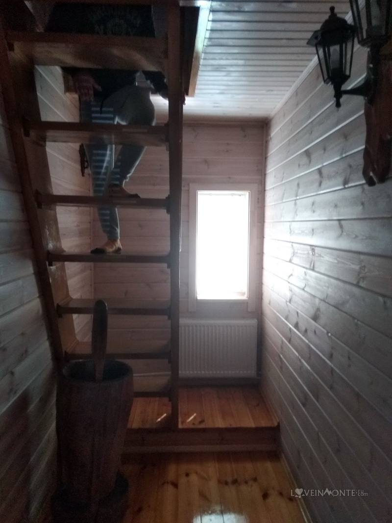 Довольно крутая лестница. Лев сам поднимался вверх, а вниз всегда просил ему помочь.