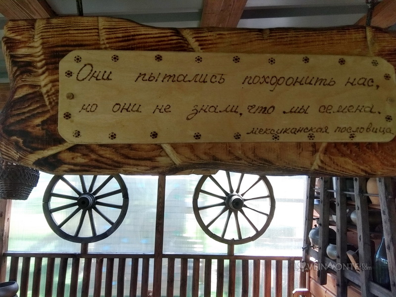 Внутри — вот такое пространство, есть место, чтобы посидеть или полежать. Там сильно пахнет медом. Точно не расскажу, чем — но вроде как эта процедура очень полезна. В доме есть целая брошюра на эту тему.