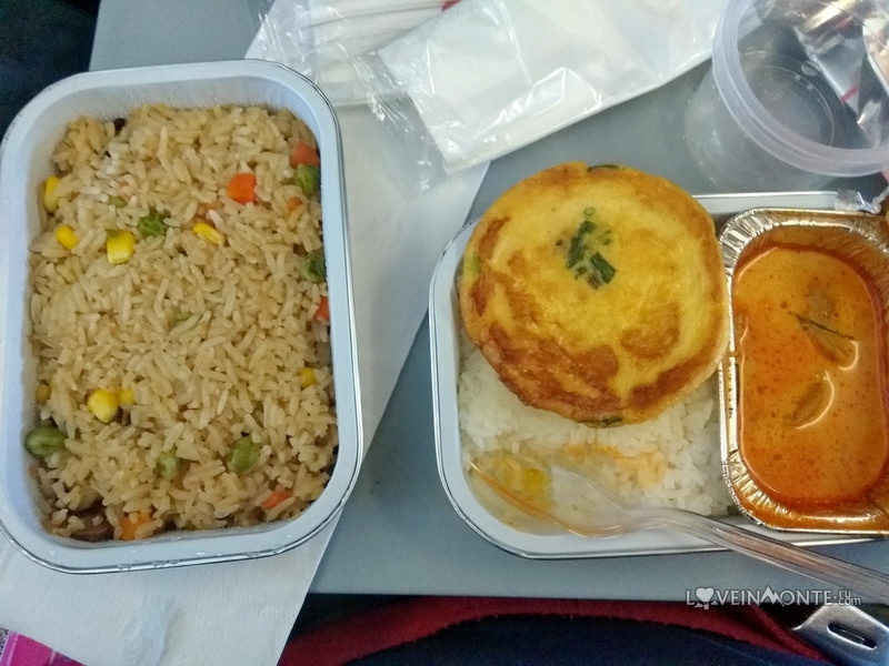 Кстати, Air Asia вполне прилично кормит. Мы заказали порцию вегетарианкого и 2 невегатарианского питания, получили фрайд райс с грибочками, в меру острое карри с курицей, омлетик и 3 микроскопические чашечки воды. Было довольно вкусно.