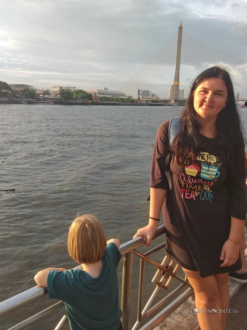 Прогулялись вдоль Чаопрайи, увидели закат. Хотели и по ней прокатиться до Чайна Таун, но было поздновато, и обратно пришлось бы возвращаться по пробкам на такси.