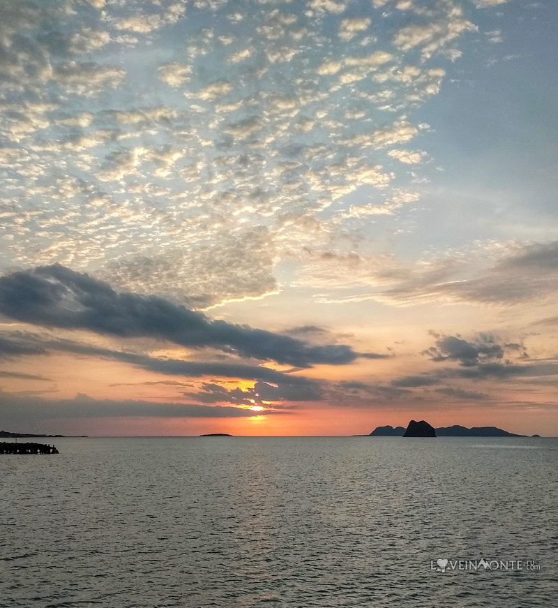 Пошли на паром. Встретили свой последний в этот приезд сиамский закат.