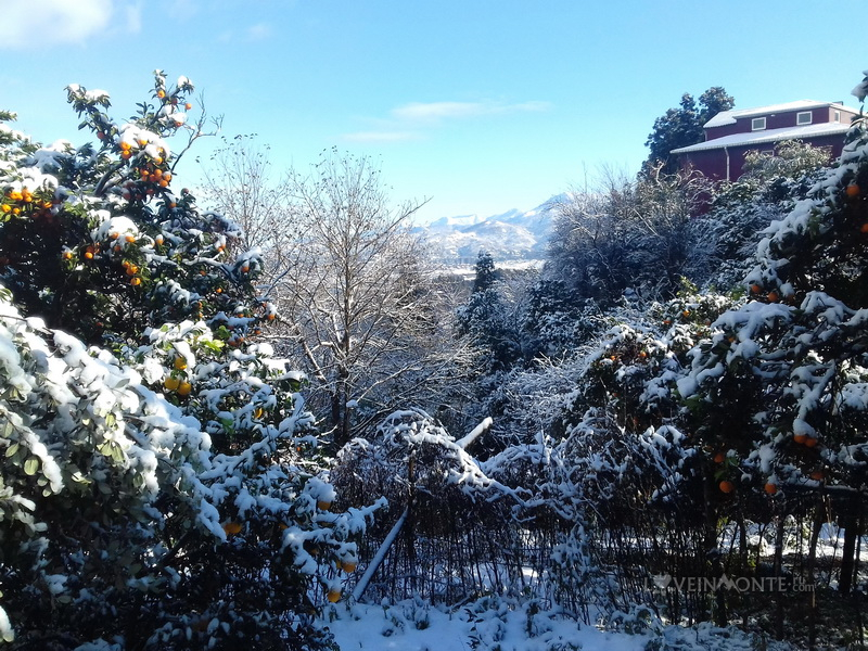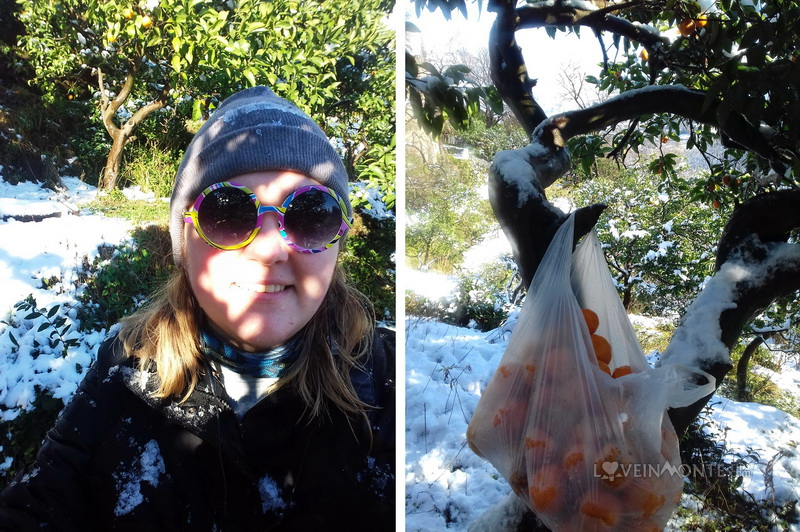 Но собирать их было непросто: тянешься за мандаринкой, а вместе с ней получаешь ледяной душ. Снег был везде. Особенно неприятненько было, когда попадал за шиворот)