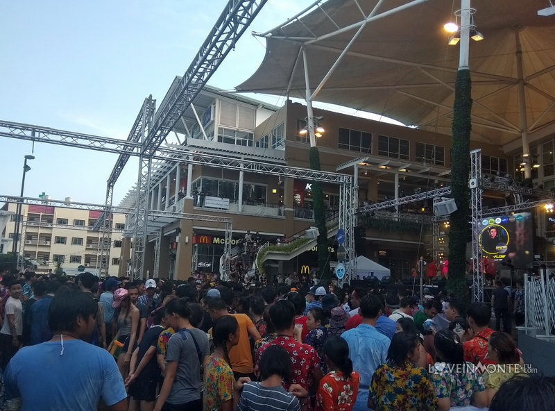 Возле Market Village вообще творилось что-то невообразимое. Сцена, рок-концерт, шланги с водой)