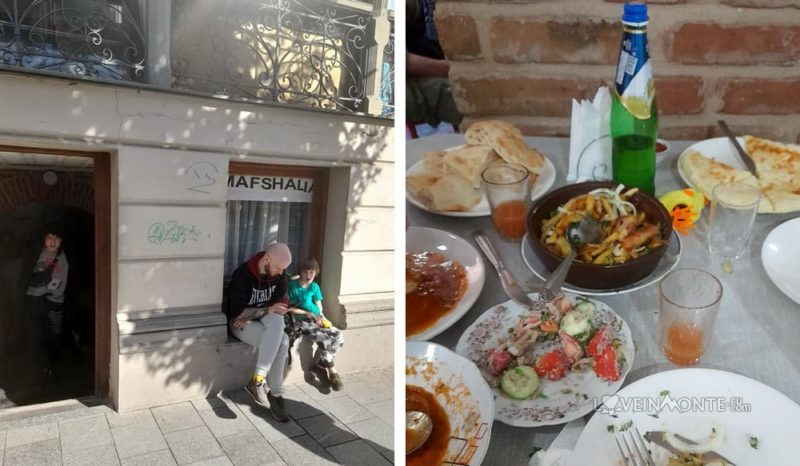 На картах гугл отмечено как Mapshalia, на окне вывеска Mafshalia. За 29 лари мы получили полный стол еды на троих: аджахури (шикарный), остри (посредственный), салат с ореховой заправкой (и заправки добавили очень щедро), имеретинский хачапури, поллитра домашнего компота из персиков (топ), бутылка лимонада и хлеб. Причем, блюда принесли очень быстро. Обстановка слегка суровая, для местных. Но всё было вкусно, мы отлично наелись.