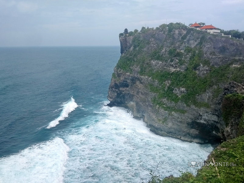 Бескрайний океан невозможного цвета, крутые утесы, древний храм и наглые обезьяны вокруг. А еще пляж-пещера, которую затапливает в прилив. Это Улувату)