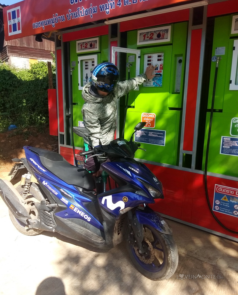Обязательно берите с собой теплые вещи и заправляйтесь в Чиангмае — в округе заправок нет, максимум — вот такой автомат ближе к трассе.