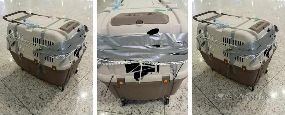 А потом в 6 утра в аэропорту поменялась смена и новые работники снова не захотели брать покоцанную клетку на борт.
