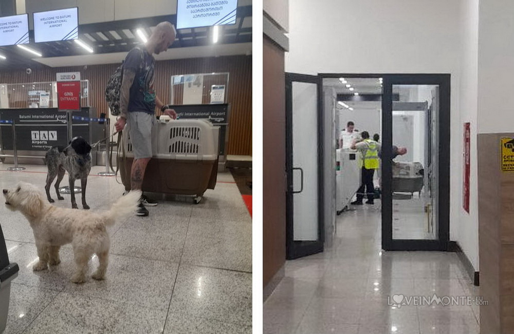 Поехали провожать Сашу и Басю в аэропорт. На регистрации всё было ок, к Саше — ноль вопросов, заплатили много денег за собачий перелет (как раз на это ушла сумма, которую за сданный билет вернули Катары) и стали ждать момента, когда можно отдавать в багаж псину. Перестраховались максимально, чтобы у него было как можно меньше стресса и времени в замкнутом пространстве: не спешили отдавать в Батуми, оформили посадочный так, чтобы Саша мог забрать его в Стамбуле — и потом снова сдать, т.к. пересадка очень длинная (14,5 часов).