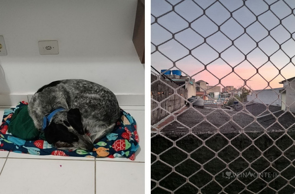 От Саши получили сообщения, что всё ок — благополучно долетели до Сан-Паулу, всё хорошо, заселился в нашу временную квартирку. Она оказалась маленькой и вот с таким чудесным видом из окна) Но зато прямо возле аэропорта. Пёс после перелета чувствовал себя хорошо, будто ничего и не было.