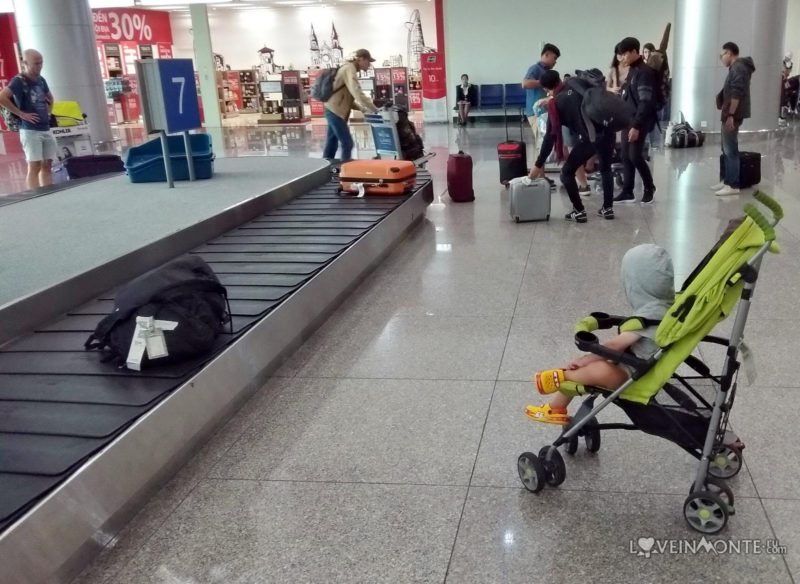 Потом прошли паспортный контоль. Офицер спросил цель визита во Вьетнам и мой ли это ребенок)
