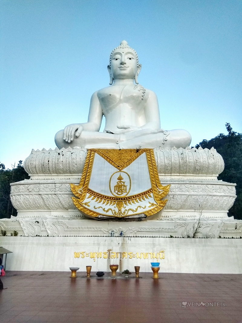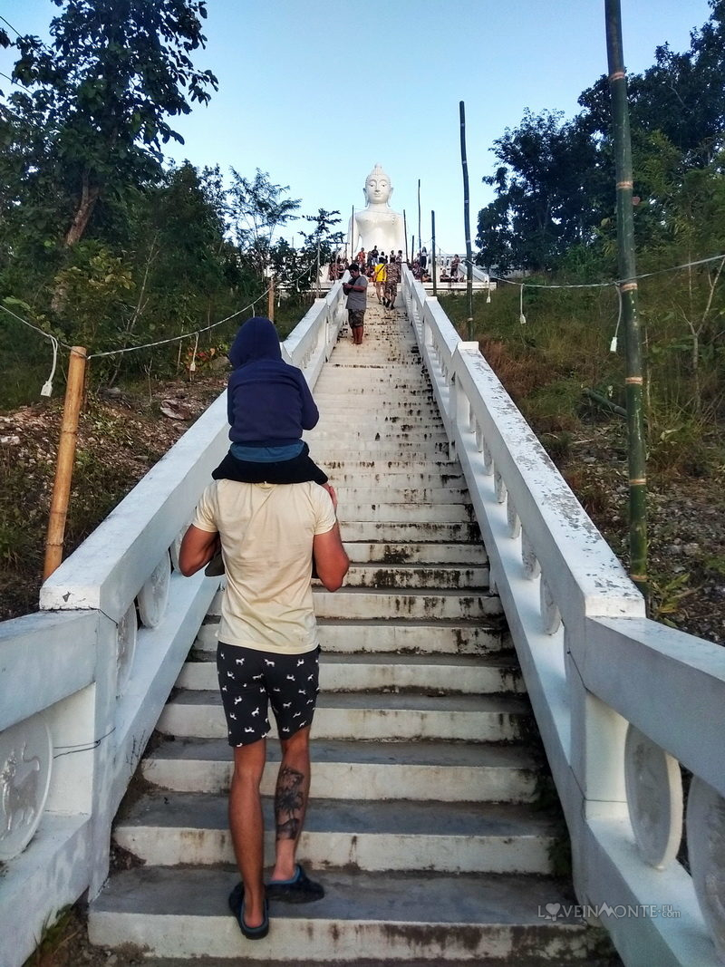 Белую статую Будды и бесконечные 395 ступеней к ней видно из разных частей Пая.